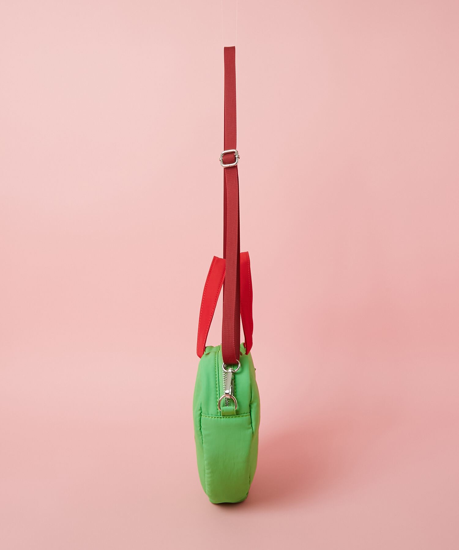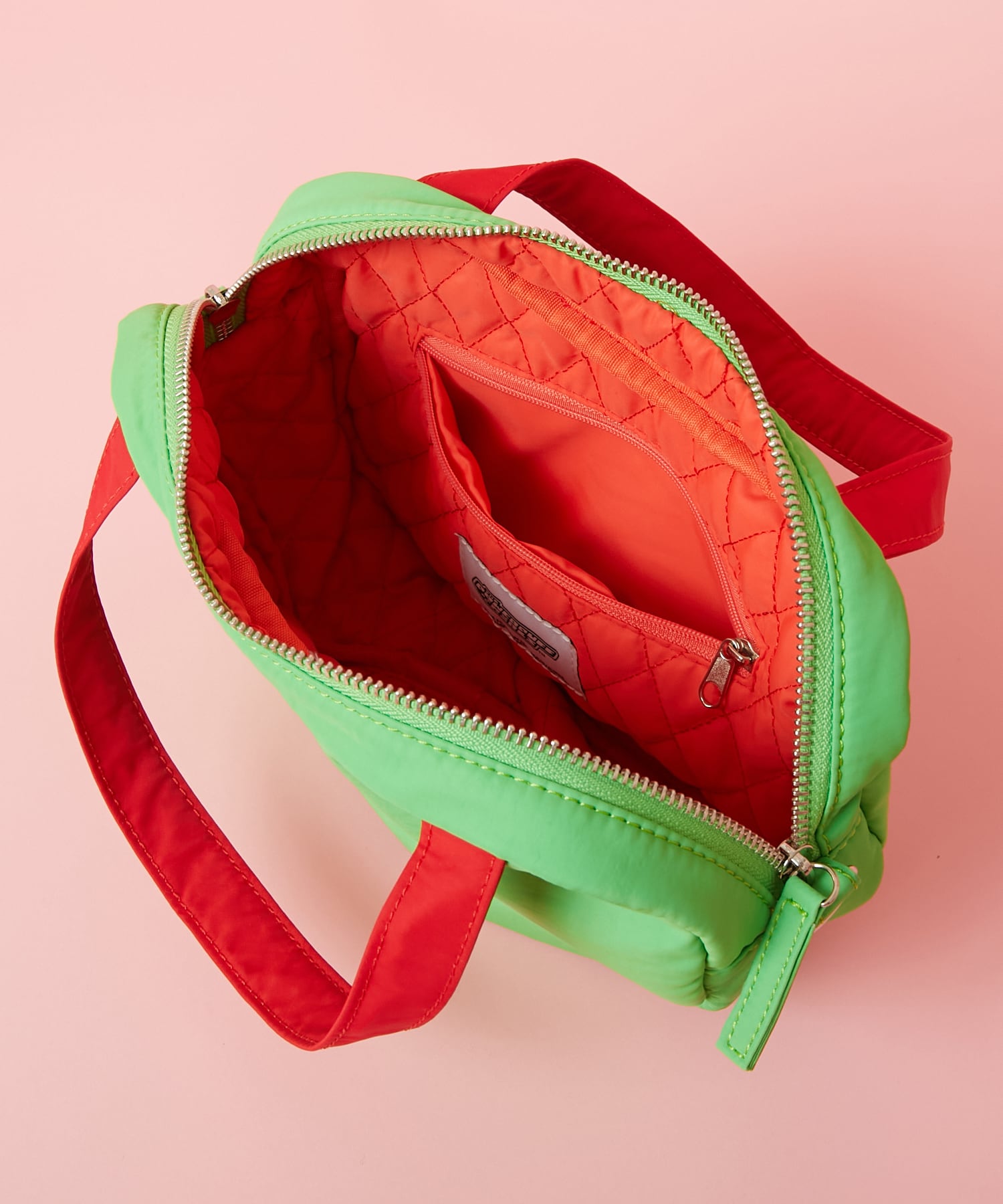 ビビッドなグリーンに赤いパイピングが目を引く、ストリート映え間違いなしのデザイン。