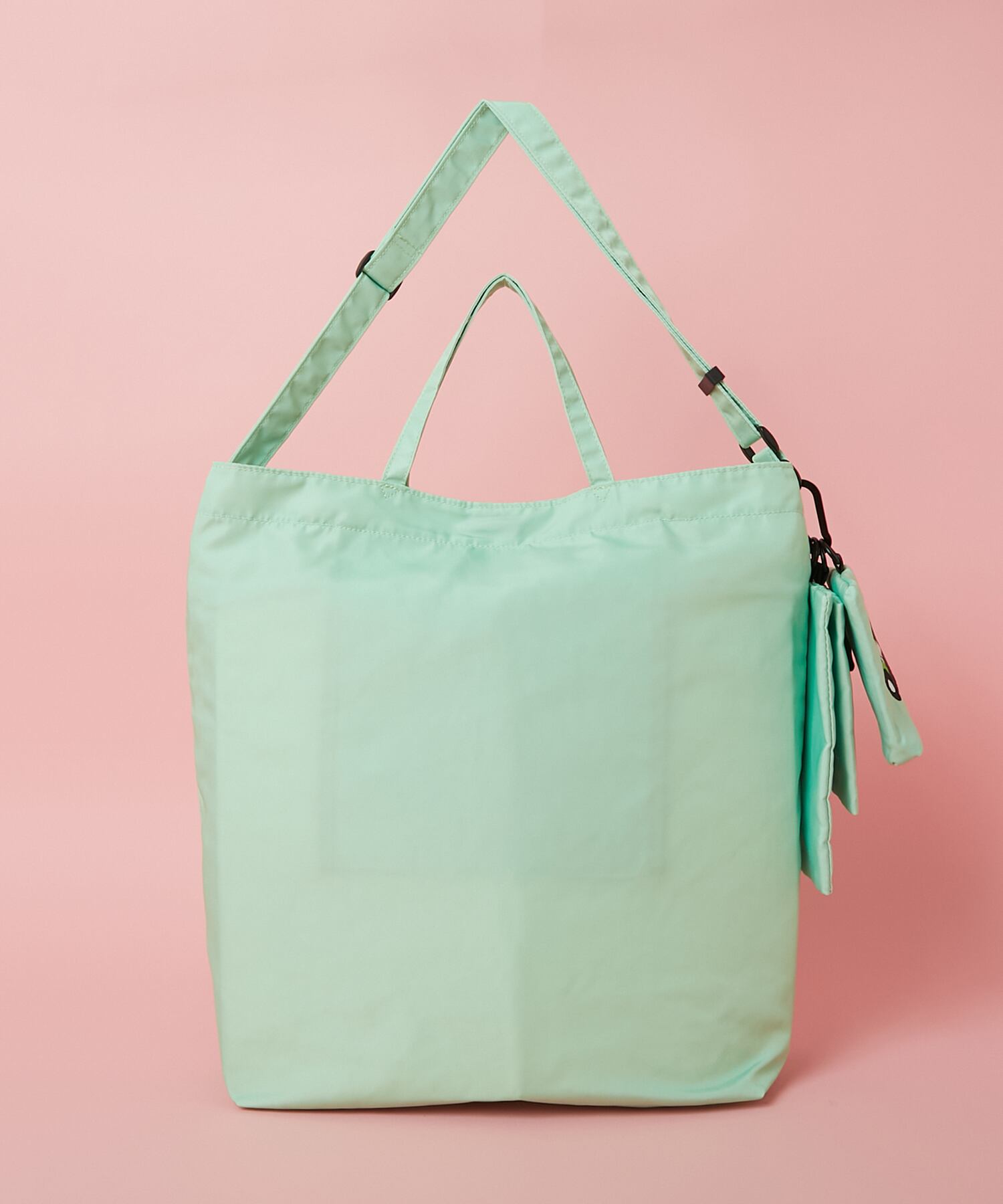 同デザインのフラットポーチとミニポーチが付属し、バッグ周りのレイヤードを楽しめます。