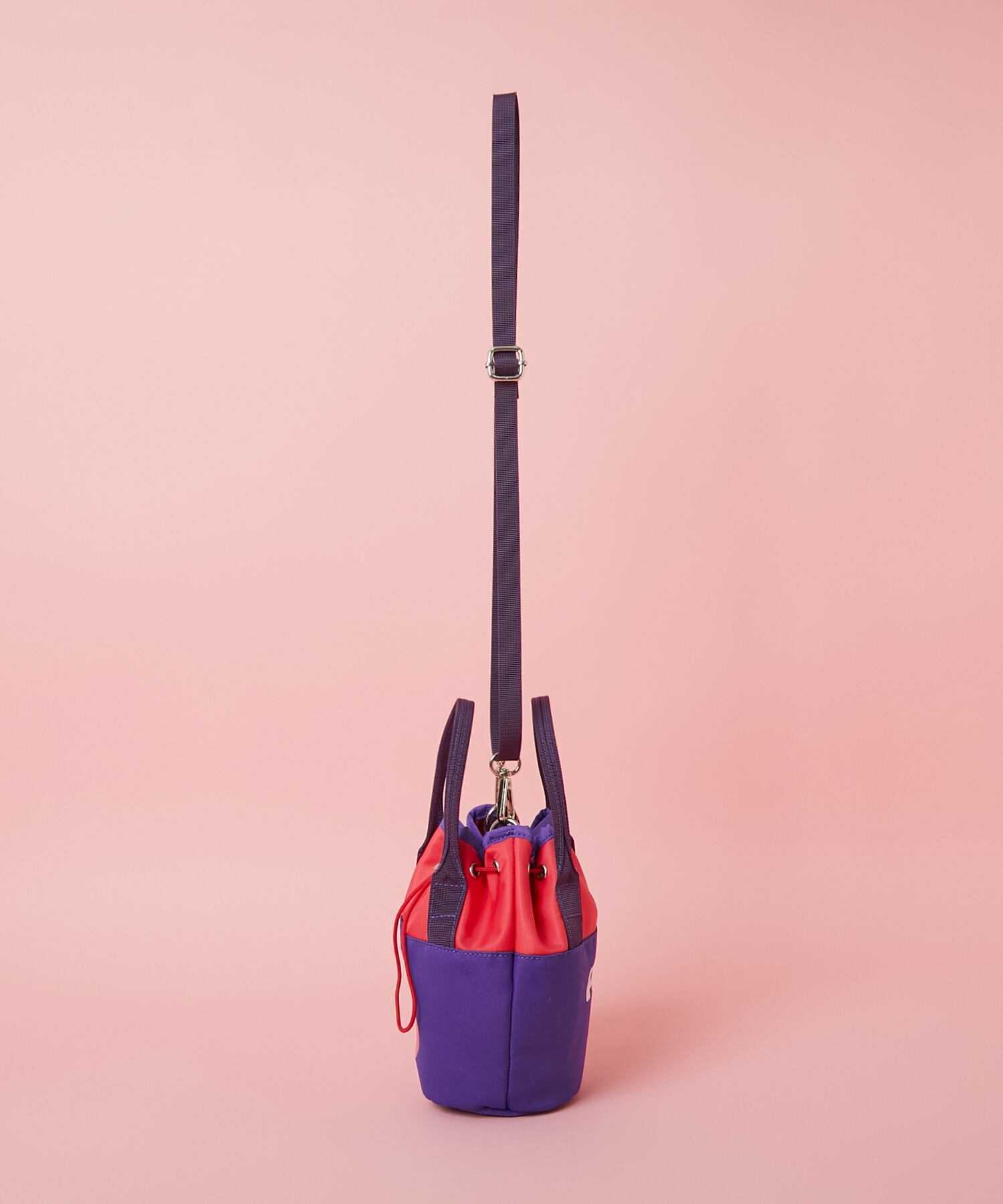 手持ちの巾着ポーチとしてはもちろん、ロングストラップを付けてショルダーバッグとしても使用可能。